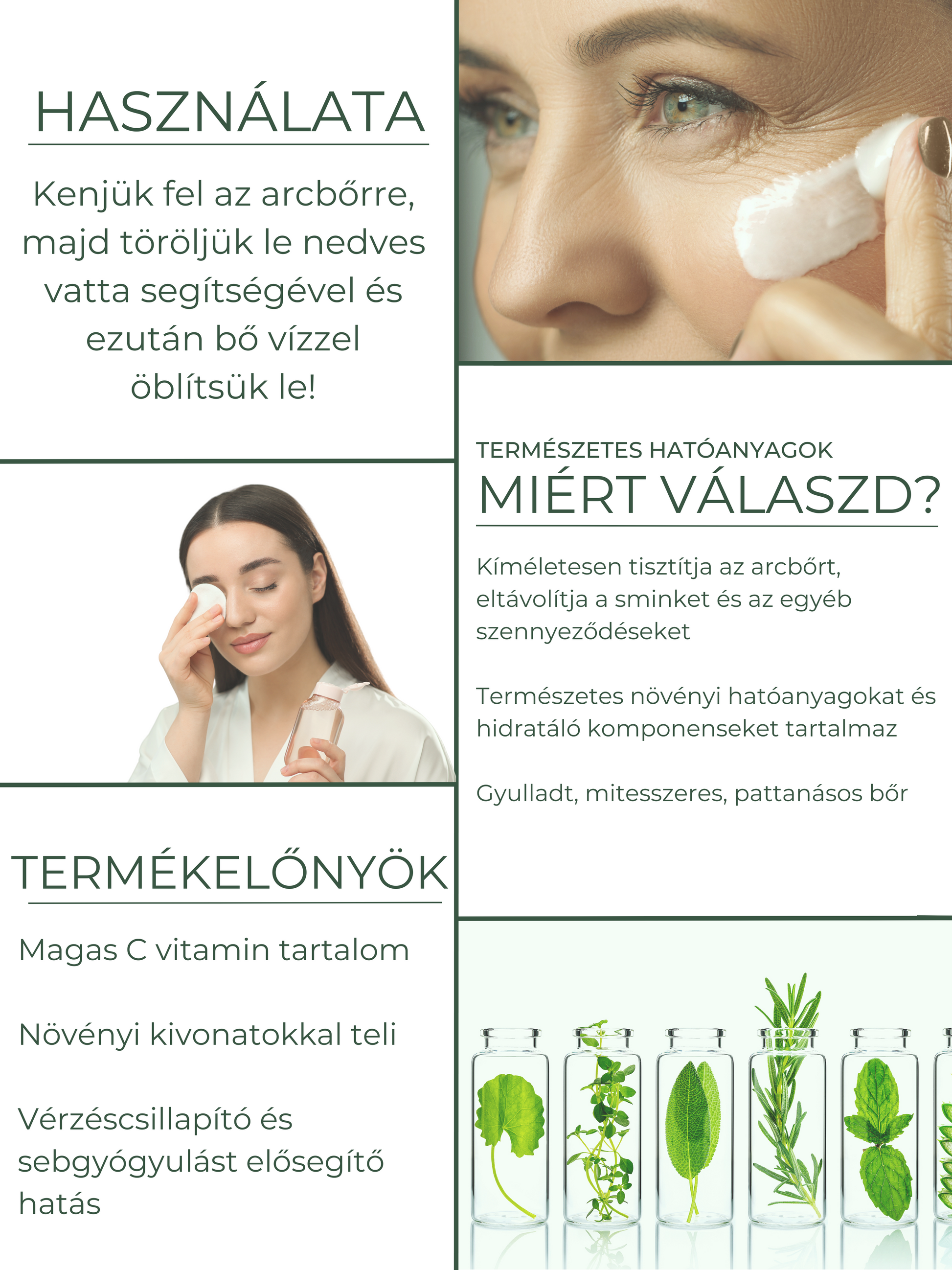 - Természetes növényi hatóanyagokat és hidratáló komponenseket tartalmaz, káros mellékhatással nem rendelkezik.